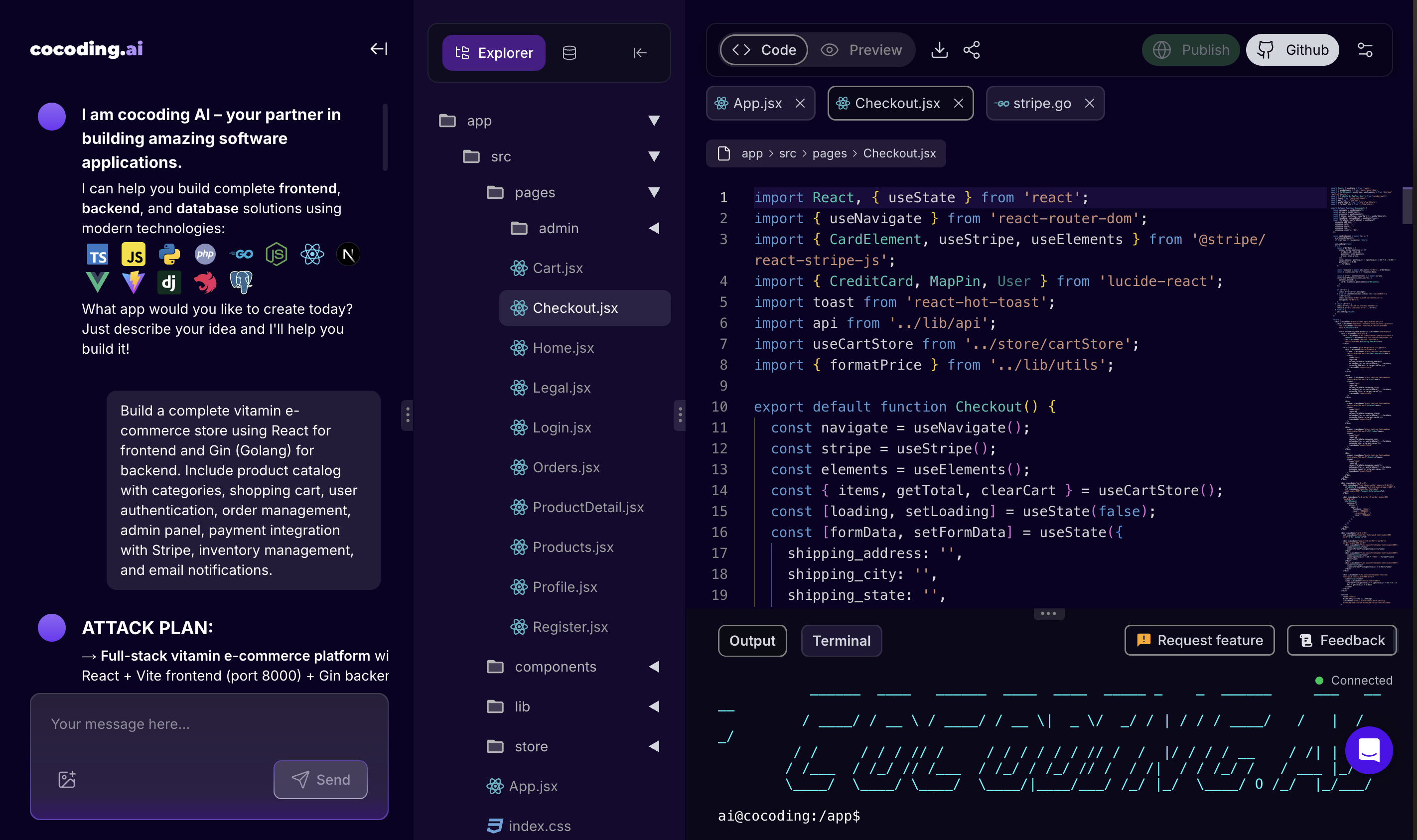 Transform your development workflow today with Cocoding AI's professional full-stack capabilities: